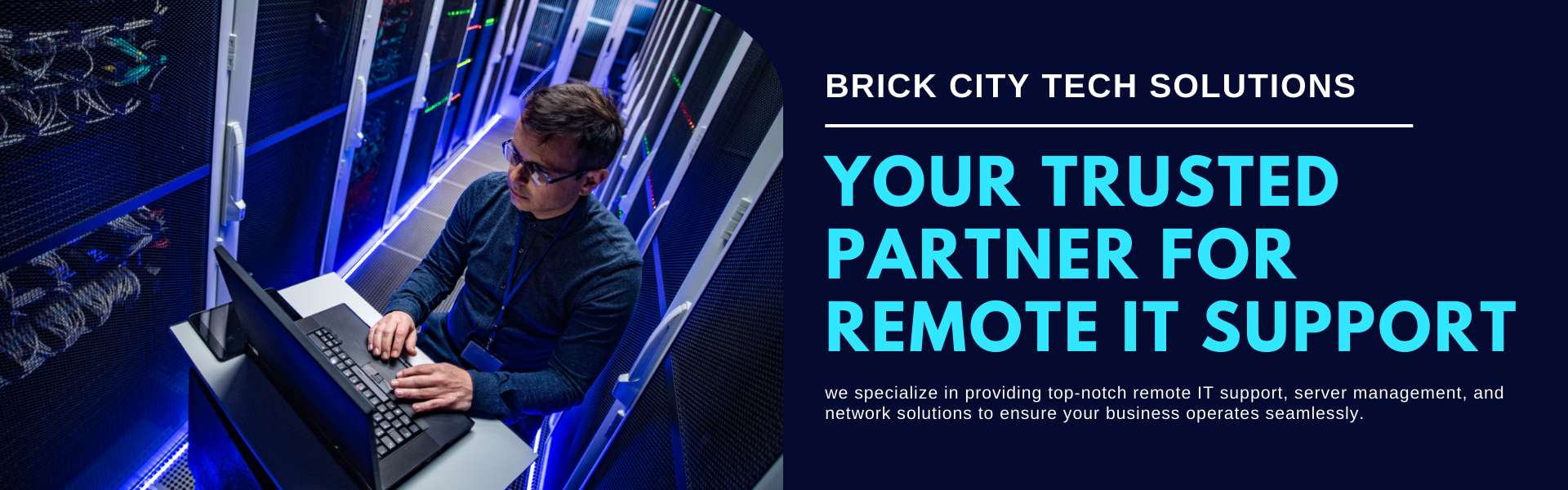 At Brick City Tech Solutions, we specialize in providing top-notch remote IT support, server management, and network solutions to ensure your business operates seamlessly. Our dedicated team of experts offers reliable and efficient assistance, no matter where you are. Beyond IT, we excel in digital marketing and advertising, crafting strategies that help your brand reach the right audience and achieve measurable results.